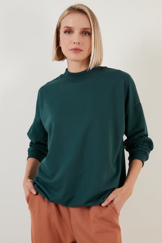 Lela Pamuklu Dik Yaka Basic Örme Kadın Sweat 5863323 NEFTİ